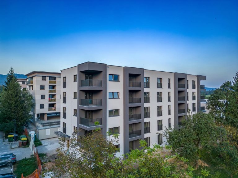 Stanovanjska hiša v Ljubljani, modernega in razgibanega videza omogoča udobno življenje v urbanem okolju.
